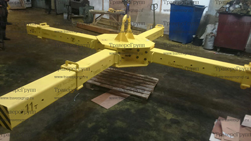 ТраверсГрупп изготовлена крестообразная траверса грузоподъемностью 11,0 тонн. Траверса имеет разборную конструкцию, что облегчает ее транспортировкку и хранение. Возможна разработка и производство крестообразной траверсы большей или меньшей грузоподъемности.