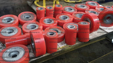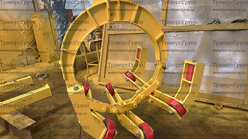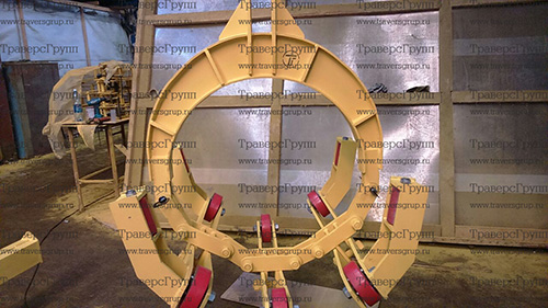 Компанией ТраверсГрупп (торговая марка "TraversGroup") изготовлены троллейные подвески ТГ-ТПП-821 (3 шт.) с роликами из полиуретана под изолированную трубу диаметром 720-820 мм.