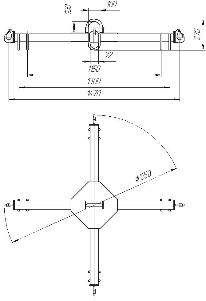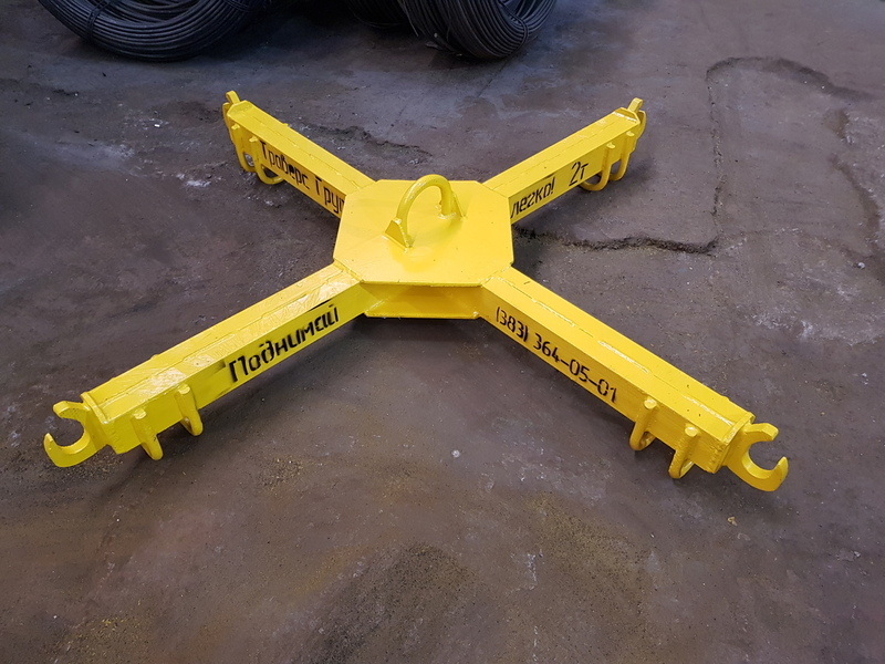 Траверса имеет самую простую крестовую конструкцию. На торцах траверсы приварены крюки с замками. Надежная и простая конструкция.