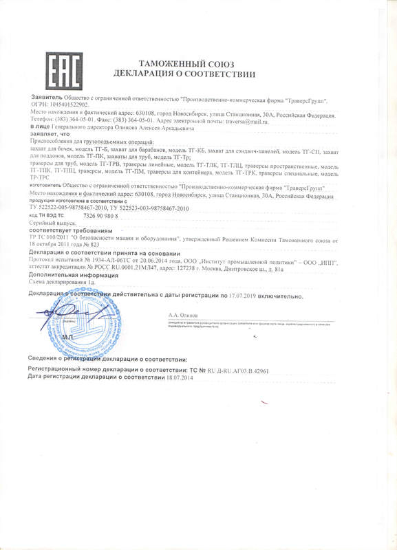 Декларация о соответствии ПКФ "ТраверсГрупп" от 18.07.2014